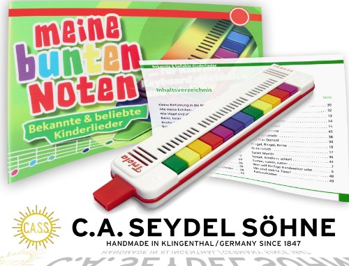30 Kinderlieder, inklusive Farbaufkleber und Erklärung zur Verwendung des Heftes auch mit Melodika, Keyboard oder Klavier Inklusive neuem, deutlich umfangreicherem Kinderliederbuch für Triola mit den Triolatasten entsprechenden farbigen Markierungen der Tasten Hangearbeitet in Deutschland - entwickelt und hergestellt von C.A. Seydel - weltweit ältester Hersteller von Mundharmonikas, über 160 Jahre Tradition und Innovation Seydel Triola 12 - leicht zu erlernendes Blasinstrument mit farbigen Tasten für Kinder ab 3 Jahren Saubere Intonation, große Luftdichtigkeit, leichte Ansprache, große Klangfülle und lange Haltbarkeit