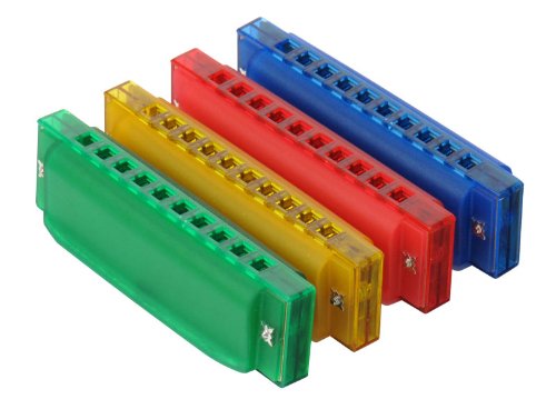 Mundharmonika in C-Dur Tonart in grün, gelb, rot und blau erhältlich (Lieferung farblich unsortiert) 20 Stimmzungen Kunstoff Kanzellenkörper 10 Kanzellen