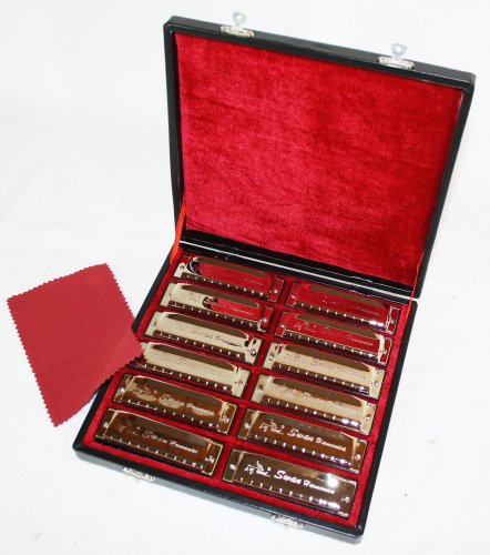 Mundharmonika im Set- Blues Harp. 12verschiedene+Koffer Feature